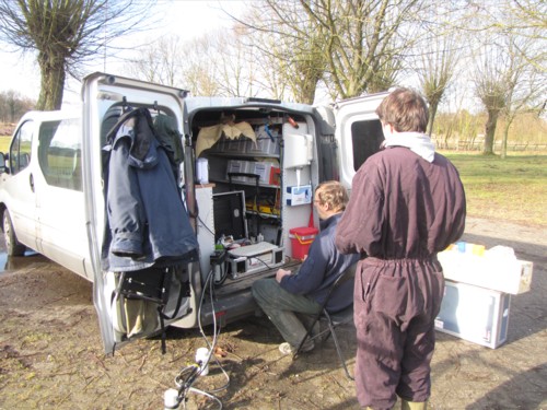 en een RTK-GPS neemt gelijktijdig de positie op. Zowel metingen