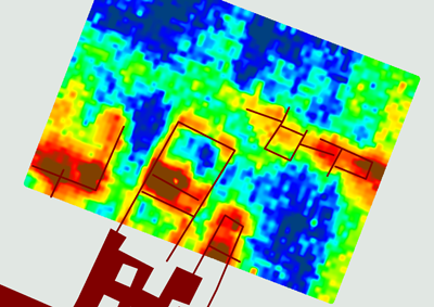 Als geofysische onderzoeksmethode zijn hier ook de vier aspecten van een archeologisch-geofysisch onderzoek goed herkenbaar: